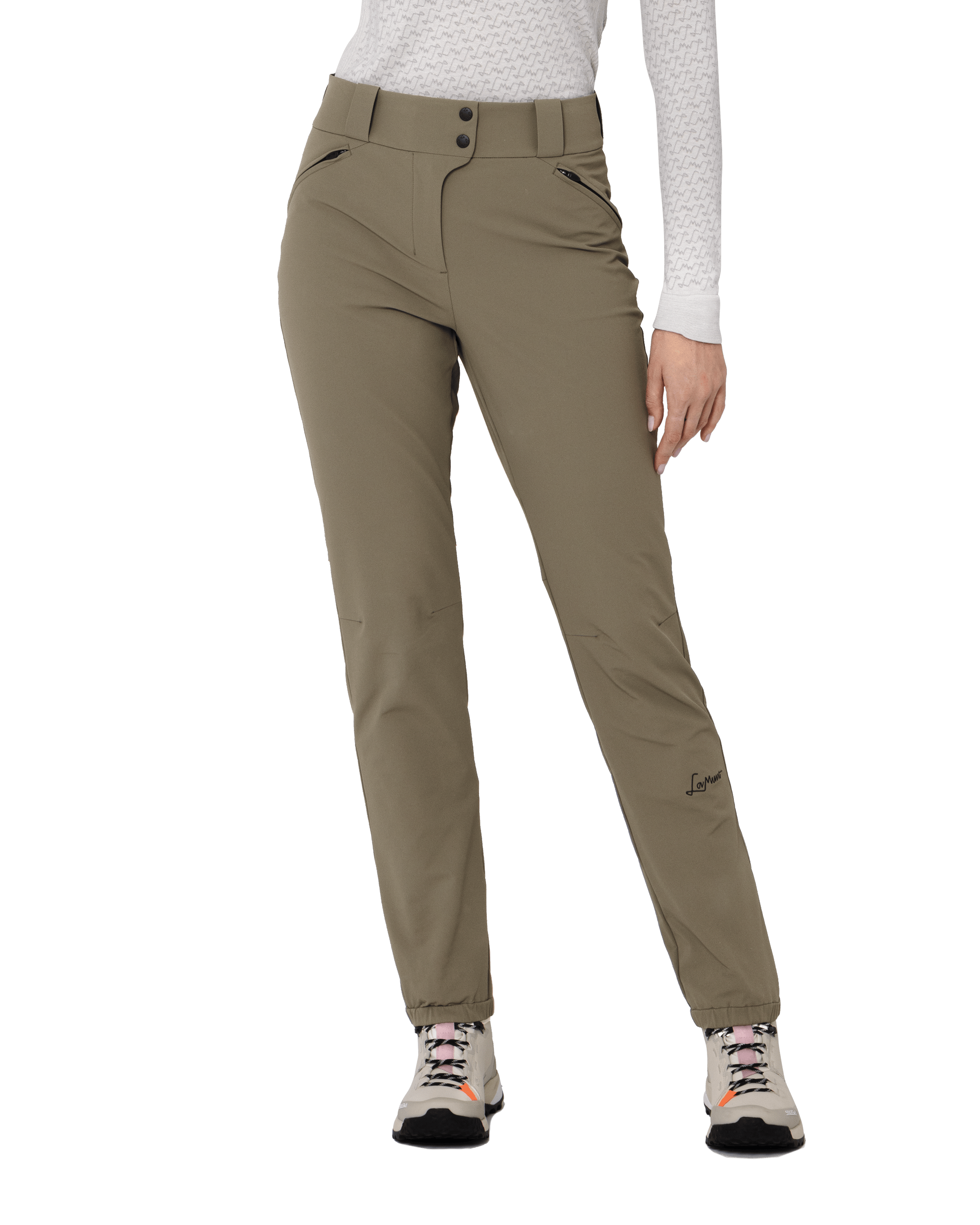 Made from our proprietary Durastretch fabric, the Michela Winter Mountain pants are tough yet supple, offering light wind and rain protection for all your hiking or mountain activities on colder days. With 4-way stretch performance, preshaped knees and lightly gathered cuffs, they follow your every move, cutting a stylish mountain look that's second only to their technical performance. Features like belt loops, a high protective waistband at the back, over-boot zipped gussets at the back of the lower leg, and zipped hand pockets round off these sleek, minimalist mountain pants. And naturally, they are free from PFAS (per- and polyfluoroalkyl substances). Wear them on windy summit days all year round, or for winter hiking – these pants will have you covered and looking good too!